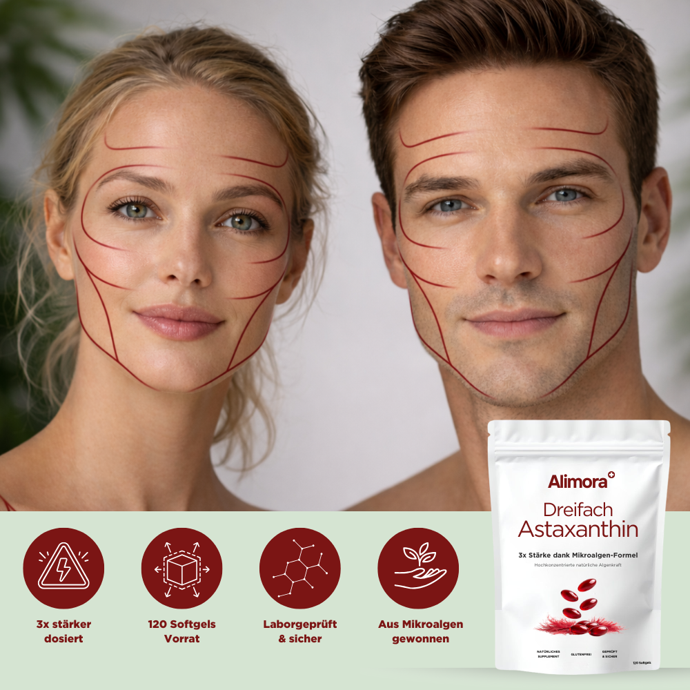 Alimora’s Dreifach Astaxanthin unterstützt bereits unzählige Frauen und Männer dabei, oxidativen Stress zu reduzieren, die Haut vor äusseren Einflüssen zu schützen und wieder frischer und strahlender auszusehen.