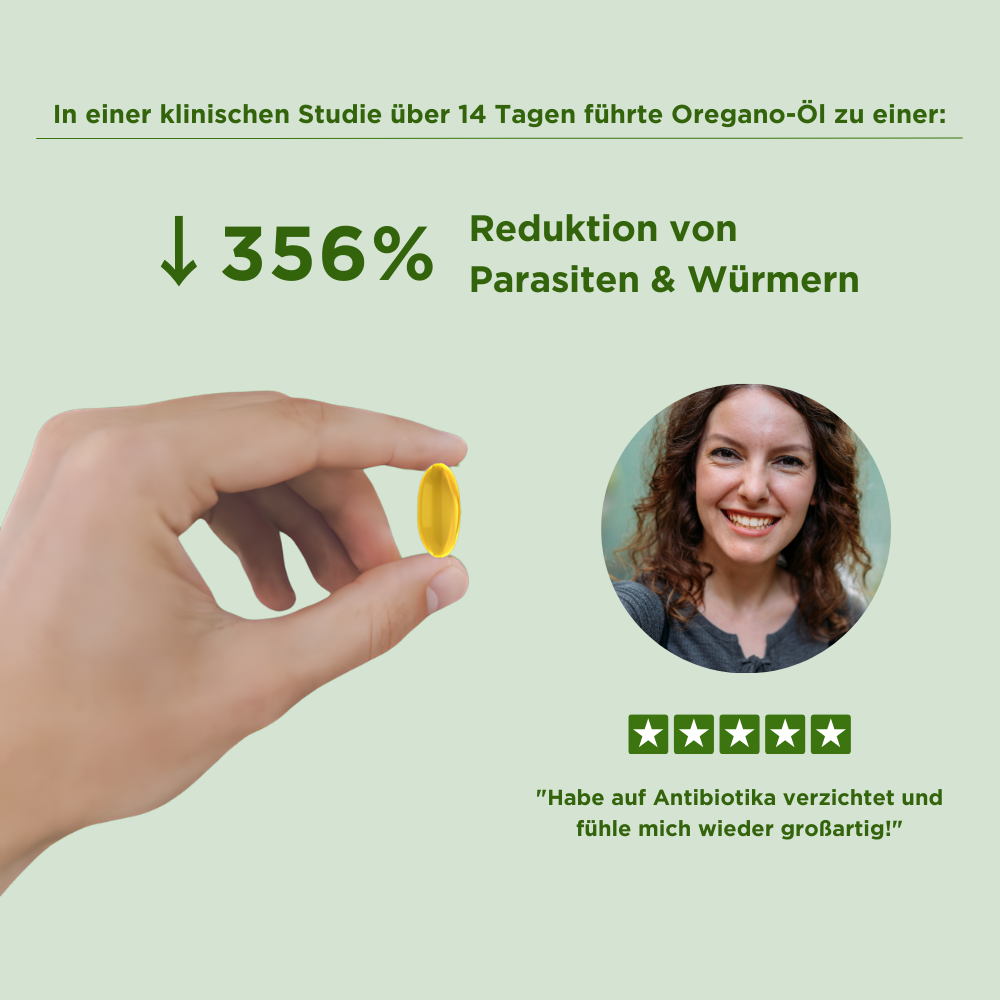 Ja! Die 2-in-1 Formel aus Oregano- und Schwarzkümmelöl hat starke antiparasitäre Eigenschaften und unterstützt die Darmgesundheit.
